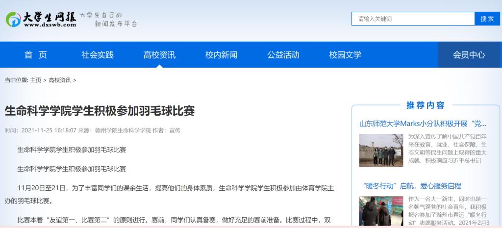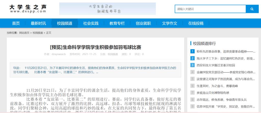 11月20日至21日,为了丰富同学们的课余生活,提高他们的身体素质,ok138cn太阳集团古天乐学生积极参加由体育学院主办的羽毛球比赛。