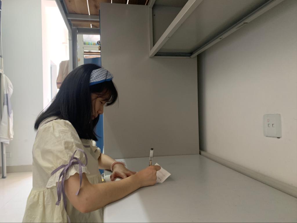 毕业生以寝室为单位,以信传情,以字达意,提笔记录大学成长的收获感悟、令人难忘的寝室故事、学习生活等方面的经验,并将彩铅勾勒的简笔画、精心制作的干花折纸附于信封之上,将美好祝愿真挚地传递给即将入住的新生,一段段文字、一封封书信成为毕业生给学弟学妹大学生活的路标指引。