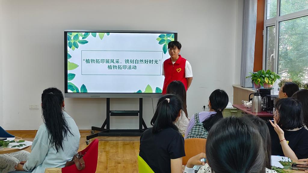 活动现场,主讲人2022级生物科学专业王文浩同学用幽默风趣的语言就拓印原理、制作材料、制作过程三个方面进行生动的讲解,并展示了优秀拓印作品。随后,同学们充分发挥想象力,利用植物拓印的方法,在纸上留下了树叶、花朵的纹理。最后,各小组进行作品展示并交流创作理念。