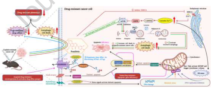pomifin诱导自噬细胞死亡和抑制p -糖蛋白的分子靶点和机制图