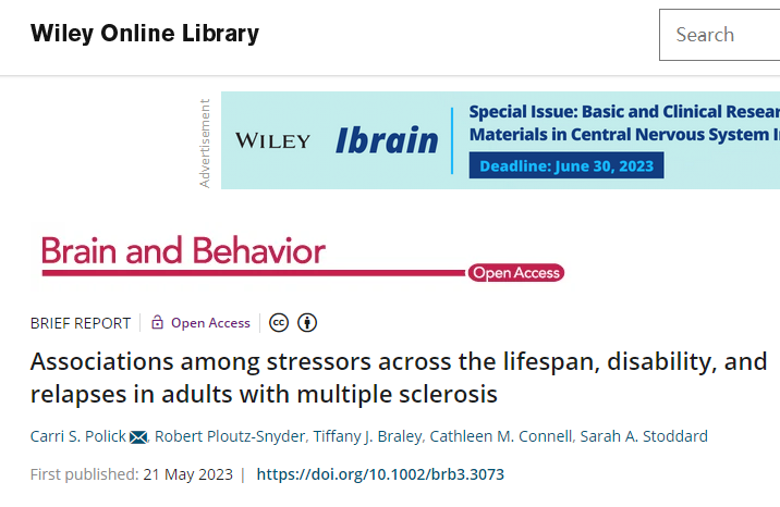 Carri S. Polick,Robert Ploutz-Snyder,Tiffany J. Braley, et al. Associations among stressors across the lifespan, disability, and relapses in adults with multiple sclerosis, Brain and Behavior (2023). DOI:10.1002/brb3.3073