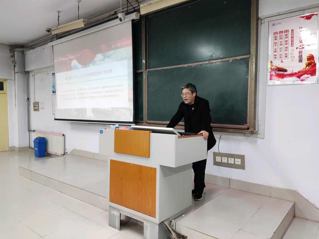 12月22日,为积极贯彻落实习近平总书记“把红色资源利用好、把红色传统发扬好、把红色基因传承好”的重要指示精神,深入推进党史学习教育,加强学校思想政治建设,ok138cn太阳集团古天乐党委书记赵庆福于求实楼0111教室为师生党员上了一堂红色思政课。