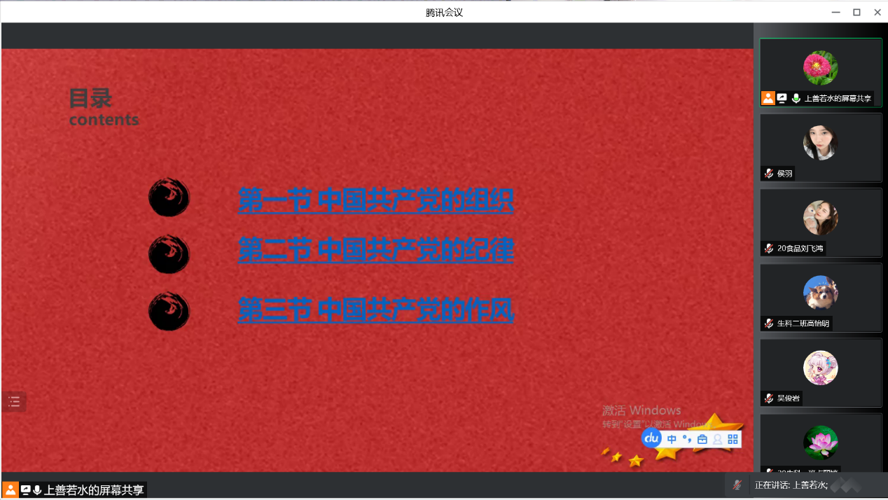 为强化入党积极分子的理论武装和纪律执行,增强他们的党性修养和宗旨意识,我院于2022年4月20日通过腾讯会议开展“纪律严明,作风优良”入党积极分子线上培训课。此次课程由党委副书记夏书珍主持,ok138cn太阳集团古天乐入党积极分子参加了本次培训。