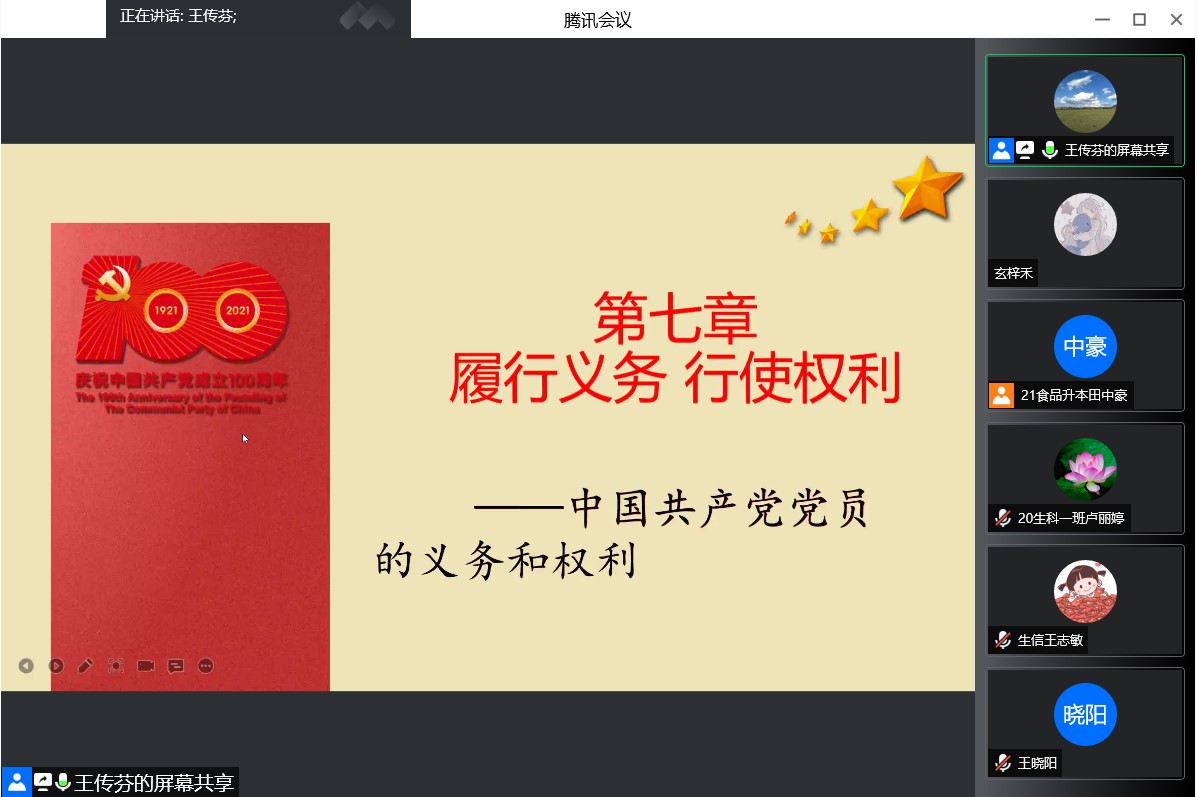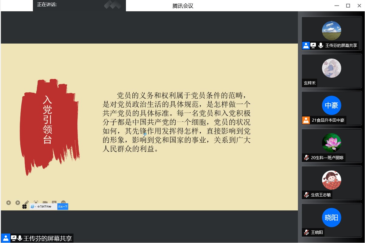 为使入党积极分子们认真履行党员义务,正确行使党员权利。我院于2022年4月22日通过腾讯会议开展“履行义务,行使权力”入党积极分子线上培训课。此次课程由王传芬老师主持,ok138cn太阳集团古天乐入党积极分子参加了此次培训。