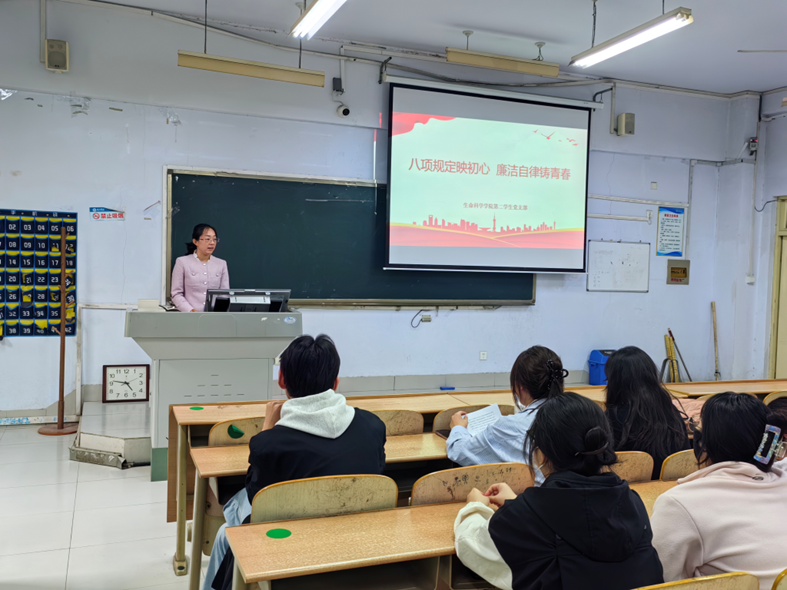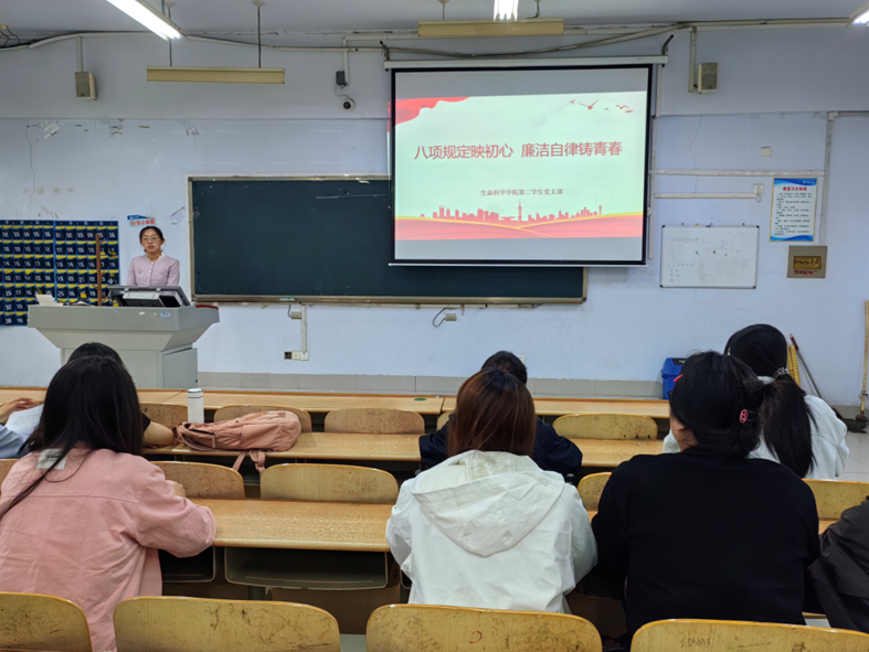 为深入学习贯彻中央八项规定精神,引导新时代大学生树立廉洁自律意识,ok138cn太阳集团古天乐于4月15日在求实楼0105教室组织开展“八项规定映初心,廉洁自律铸青春”主题党课。本次党课由第二学生党支部书记郑金召讲授,全体学生党员参加此次学习。