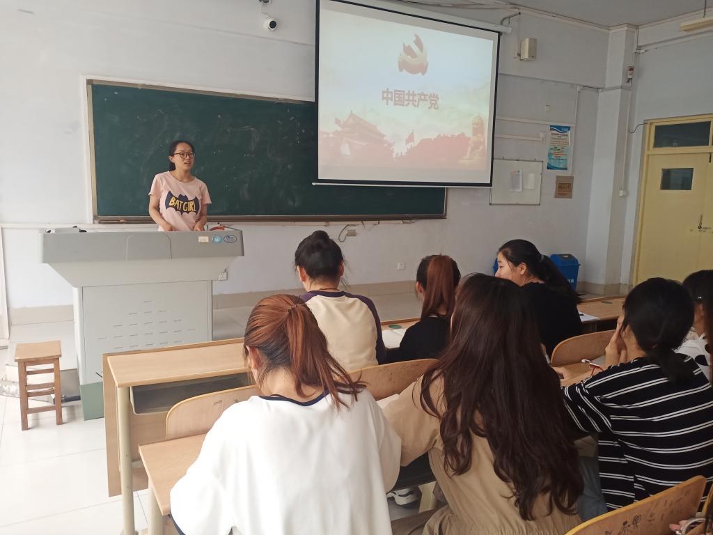 为了强化党史学习教育,提高同学们的党性修养,ok138cn太阳集团古天乐2021年6月15日在求实楼0105教室开展党课学习,第二学生党支部书记郑金召为新发展的学生党员上了一堂生动的微党课。