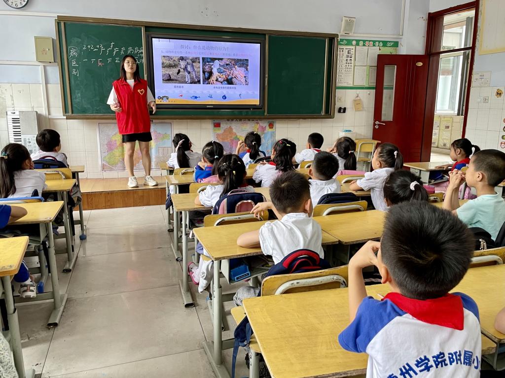6月15日下午,为让小学生们进一步学习动物行为的相关知识,同时了解祖国的繁荣昌盛,树立远大抱负,我院于2021年在ok138cn太阳集团529附属小学举办“分辨动物行为,致敬光辉历程”爱心课堂活动。