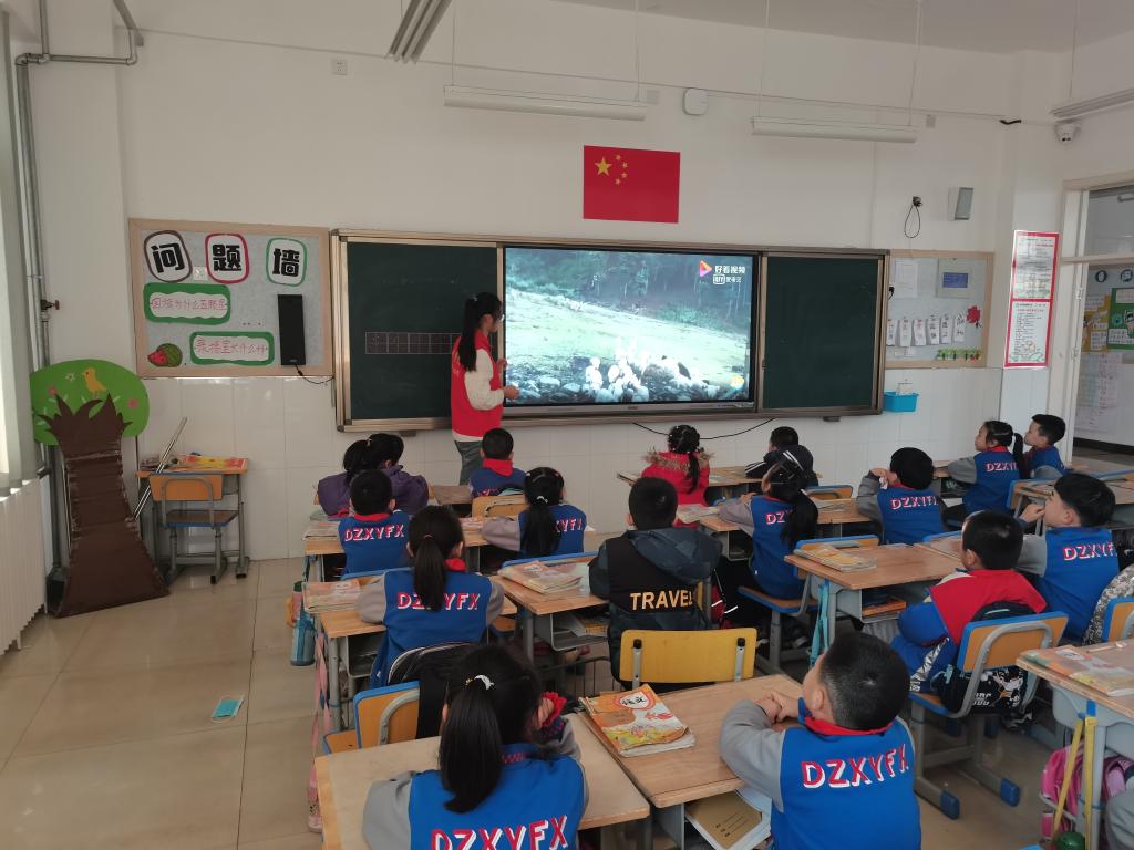 志愿者老师们用讲故事的方式向小朋友们介绍了课堂的学习目标,吸引了小朋友们的兴趣。课堂上,志愿者老师通过PPT向小朋友们讲解了关于种群和群落的相关知识,随后志愿者老师通过播放视频的形式向同学们展示了什么是种群和群落。“视频中出现了哪些种群呢?我们身边的群落又有哪些呢?”志愿者老师以问答的方式,引导学生积极思考,小朋友们经过讨论后纷纷举手回答问题。有趣的课堂知识极大地激发了小朋友们的学习兴趣,他们不断提出自己的疑问,志愿者老师也十分耐心的解答每一个问题。课堂最后,志愿者老师向小朋友讲述了生物群落在维持和改善人类生存环境方面具有不可替代的作用,并呼吁同学们保护环境,爱护大自然。