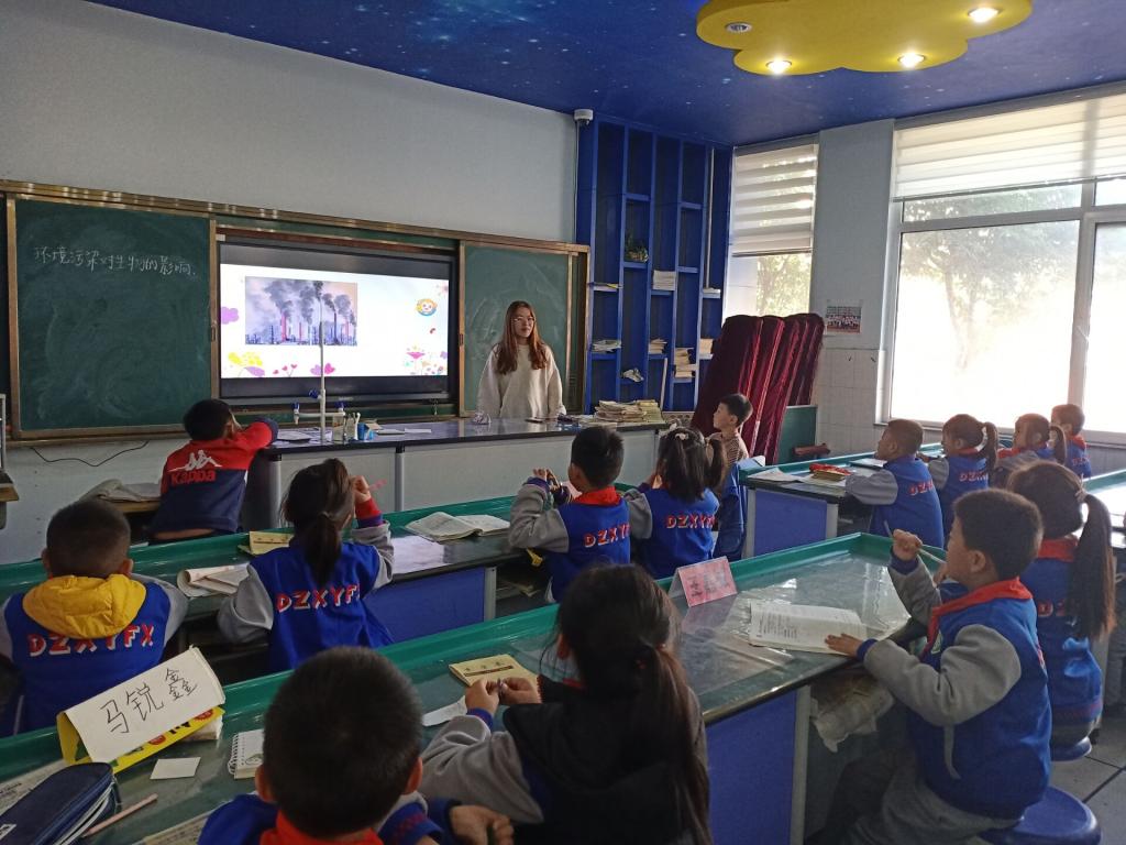铃声响起,课堂开始啦!志愿者老师通过妙趣横生的表述将小学生们的思绪汇聚在了环境污染问题上,从生态破坏的原因到环境污染的危害,再到如何预防环境污染,志愿者老师有条不紊的分析,凝练精当的讲解,恰到好处的点拨,激起了学生们的兴致,让小学生们知道了酸雨是如何形成的,烟雾排放对环境和生物造成了怎样的影响。到了提问环节,在志愿者老师充满智慧的语言推动下,小学生们积极思考,勇于表达,纷纷举手发言,都想为环境保护出一份力量。