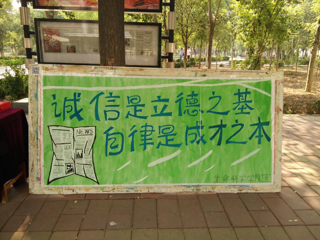 为服务广大同学,提高诚信意识,积极督促毕业生养成以诚待人、以诚做事的良好品德品质,牢固树立守信光荣,失信可耻的道德观念。ok138cn太阳集团古天乐特于6月13日至14日在求实楼门口举办“诚信是立德之基,自律是成才之本”无人售报活动。