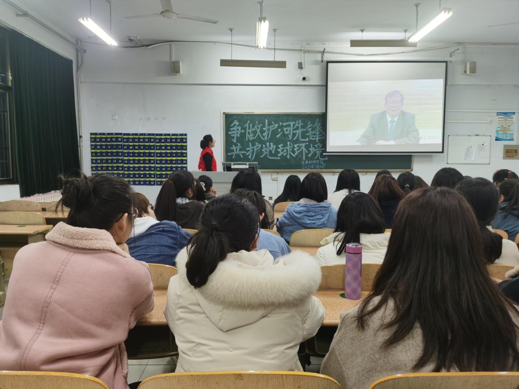 活动伊始,主讲人首先讲述了有关黄河的知识,并向在场观众提出黄河发源于哪里、目前面临哪些生态难题等问题,极大地调动了同学们的积极性。随后主讲人通过视频向同学们介绍了“保护母亲河行动”的主要内容。看完视频,同学们深刻的认识到黄河是中华五千年文化的发源地,是造福人民的幸福河,但此时却正在被人类亲手毁坏,因此我们要积极响应祖国的号召,维护我们共同的母亲河。最后主讲人呼吁大家要保护好我们赖以生存的“母亲河”,倡导同学们树立绿色文明意识、生态环境意识和可持续发展意识,为国家生态环境建设作出贡献。活动结束后,同学们纷纷表示他们不仅会以身作则,而且会动员身边的人积极参与到保护黄河的行动中去,共同维护我们的“母亲河”,营造更加干净整洁的地球环境。