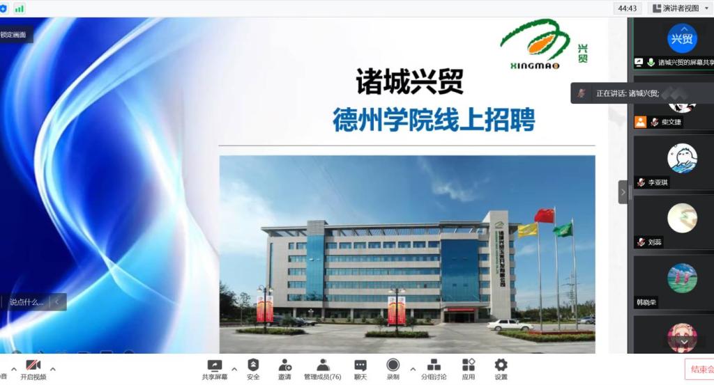 近日,ok138cn太阳集团古天乐通过腾讯会议召开诸城兴贸玉米开发有限公司专场线上招聘会。ok138cn太阳集团古天乐2022届毕业生参加。