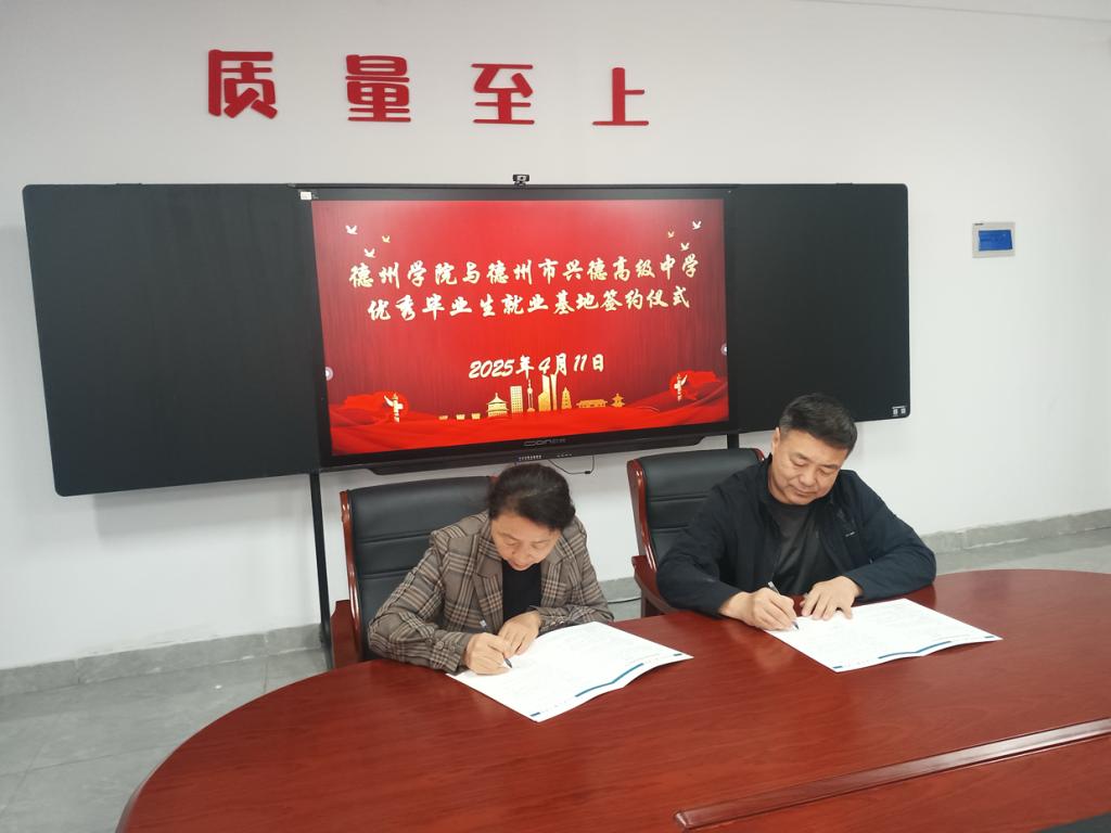 4月11日,ok138cn太阳集团古天乐党委副书记夏书珍与辅导员周向军,带领学院毕业生前往德州市兴德高级中学,开展了一场富有成效的访企拓岗专项行动,双方成功达成合作并举行了签约仪式。